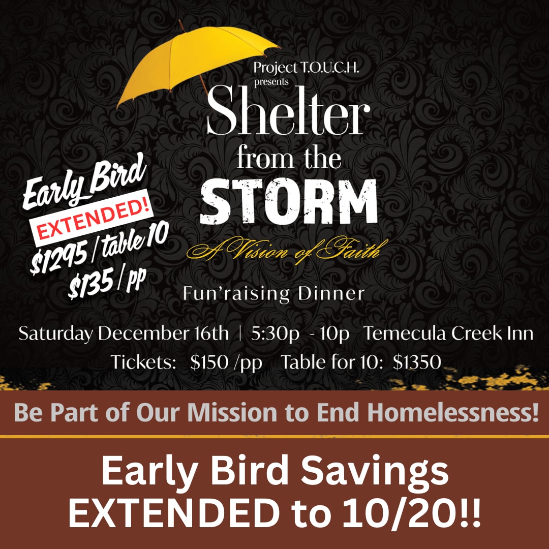 Sponsorship opportunities available now - show your support for our mission. Tickets and Sponsorship Opportunities: https://projecttouch.networkforgood.com/events/60476-shelter-from-the-storm-23