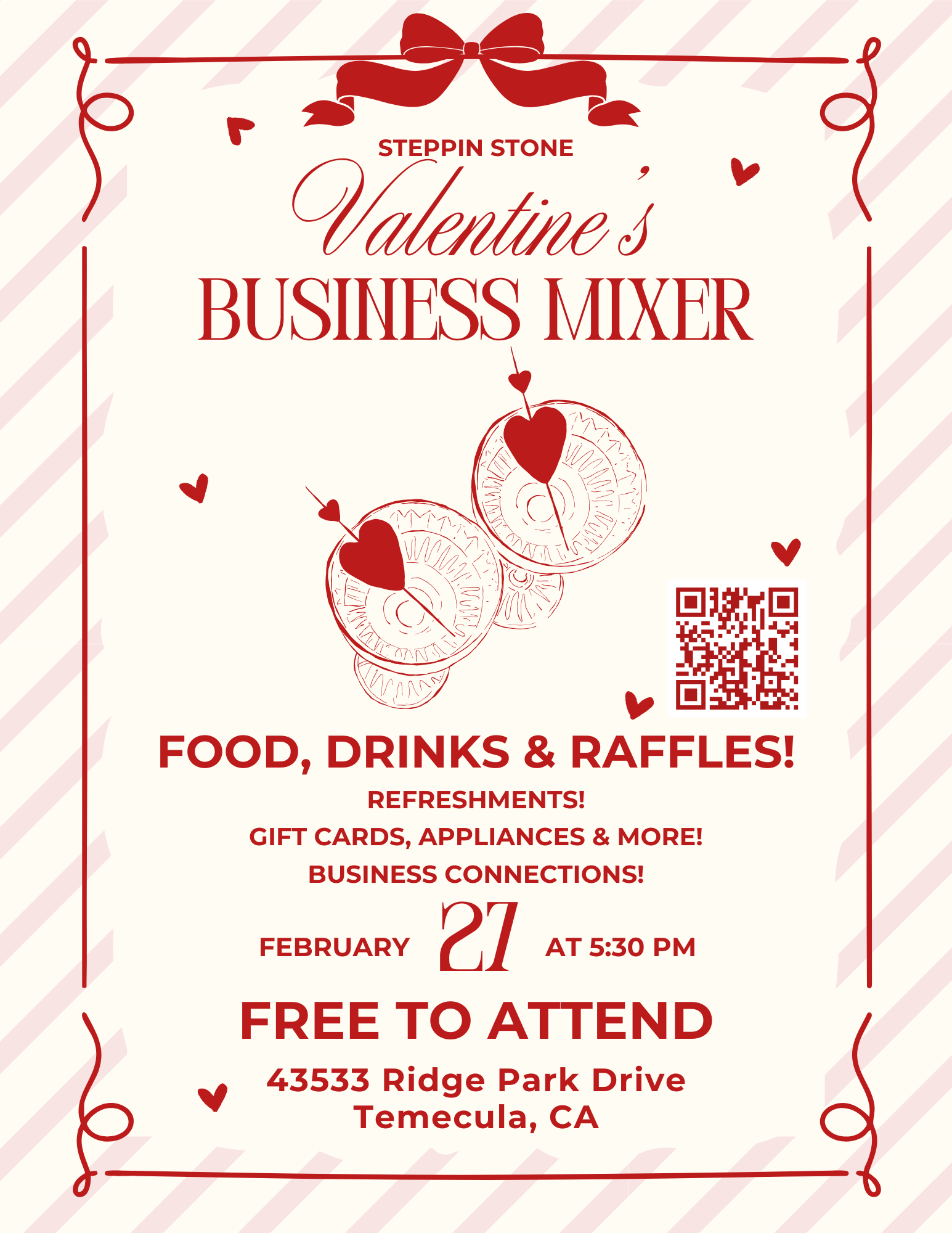 Looking to fall in love with your next business opportunity? Welcome to the Steppin Stone Valentine’s Business Mixer! Where connections are made, collaborations are born, and business chemistry is definitely in the air.
