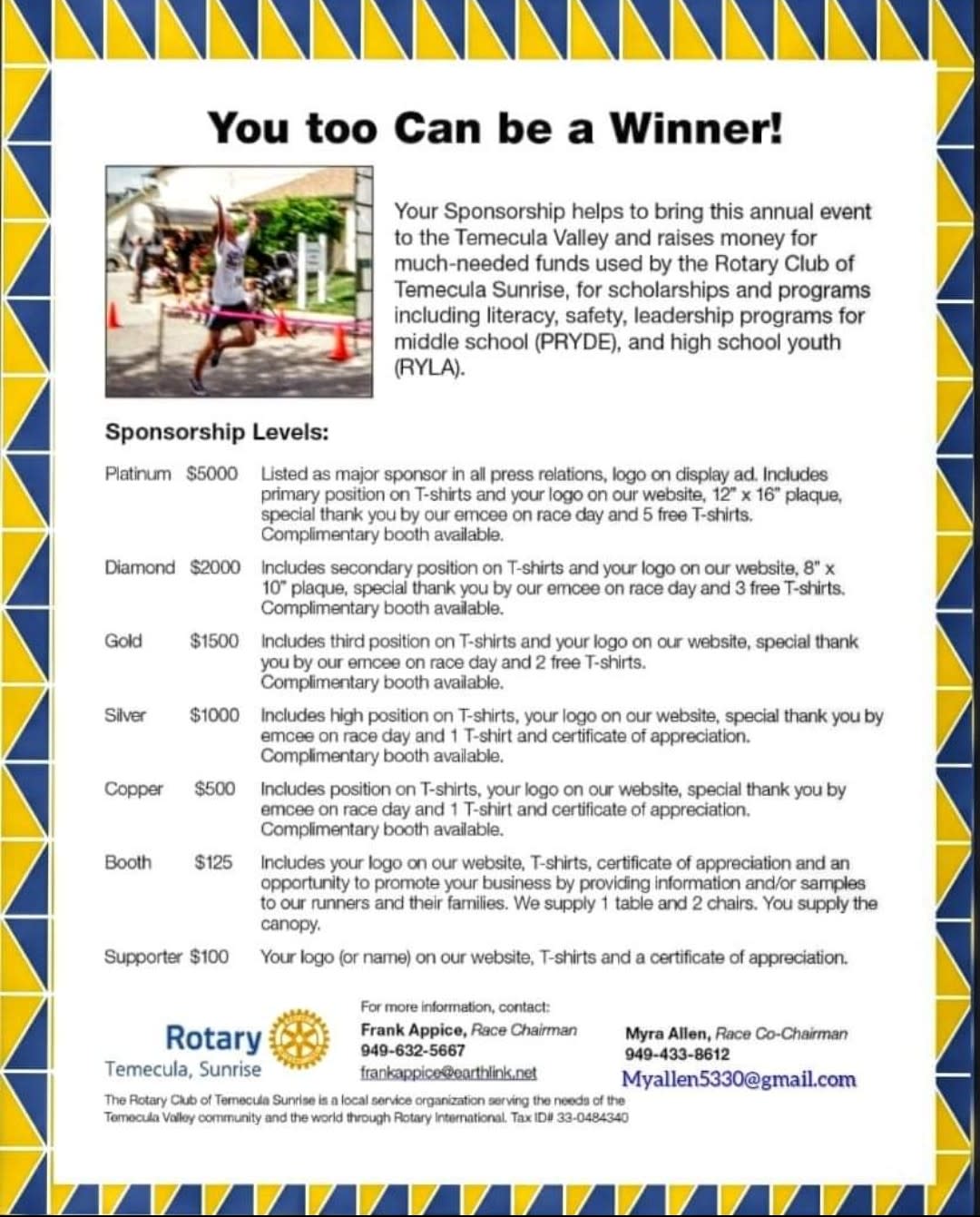 If you have questions, contact Race Chair, Frank Appice at frankappice@earthlink.net and or Race Co-Chair, Myra Allen at myallen5330@gmail.com We are so Excited to see you all on Saturday, April 29th. 🥇🏃♀️🥈🏃🥉🏃🏃♀️🏃🏃♀️🏃🏃♀️
