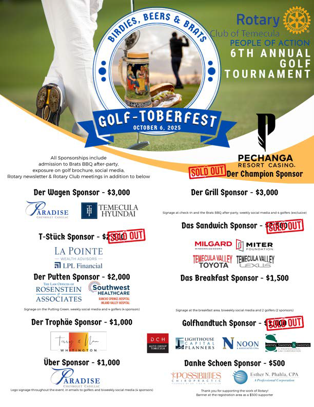 6th Annual Golf Tournament: GOLF-TOBERFEST - Rotary Club of Temecula