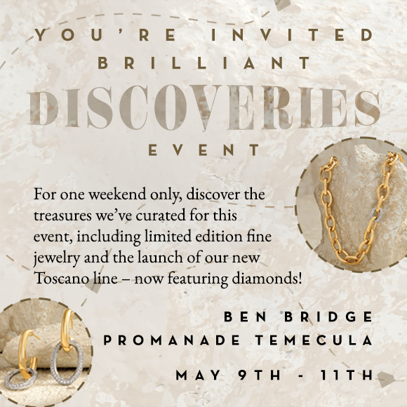 We are excited to announce our upcoming Brilliant Discoveries Event showcasing new diamond and gemstone pieces! It will also feature new product from our exclusive Toscano line. Join us for refreshments, beautiful jewelry, and maybe even find that perfect Mother's Day gift!
