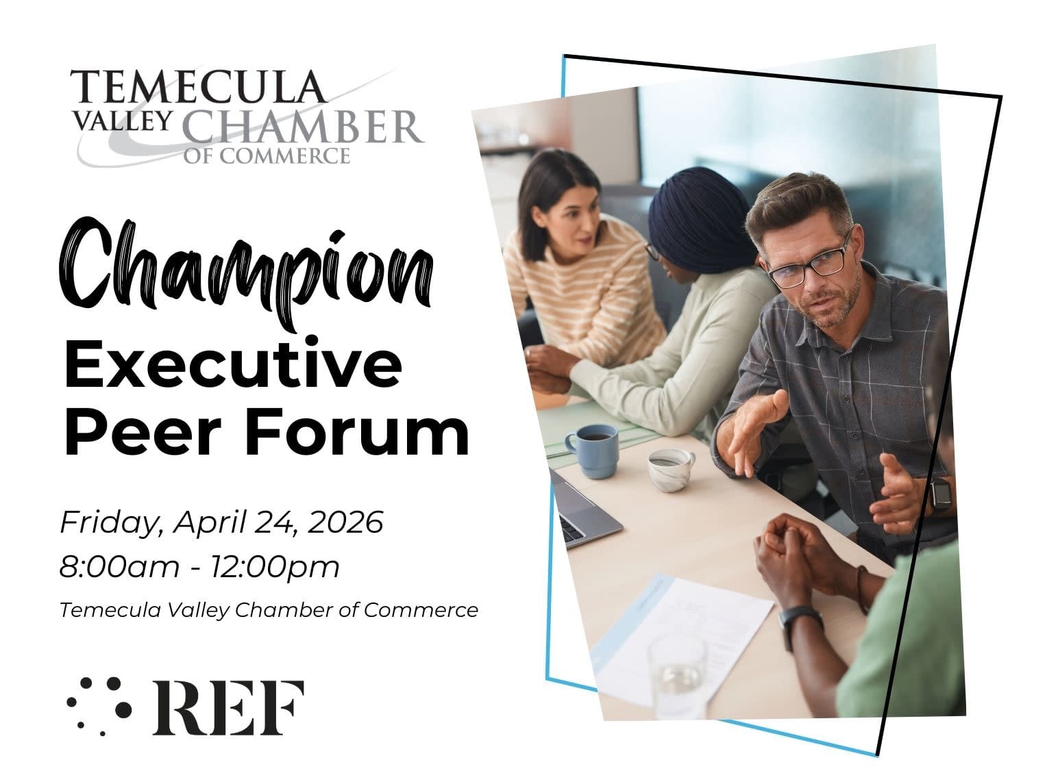 Join an exclusive gathering of high-level leaders for a morning of insight, connection, and strategic dialogue. The Executive Champion Peer Forum is a premier professional development opportunity designed specifically for CEOs, business owners, and senior executives. This forum offers a confidential space to exchange perspectives, explore challenges, and strengthen leadership capabilities through shared experience and expert facilitation.