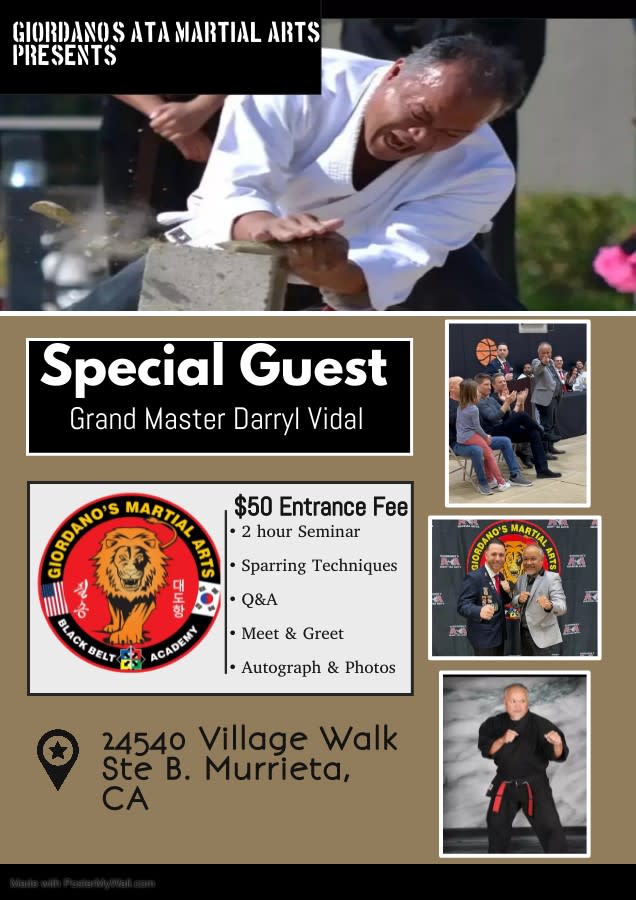 📣Giordano's ATA Martial Arts is proud to present 10th Degree Black Belt, Grand Master Darryl Vidal, as a special guest!