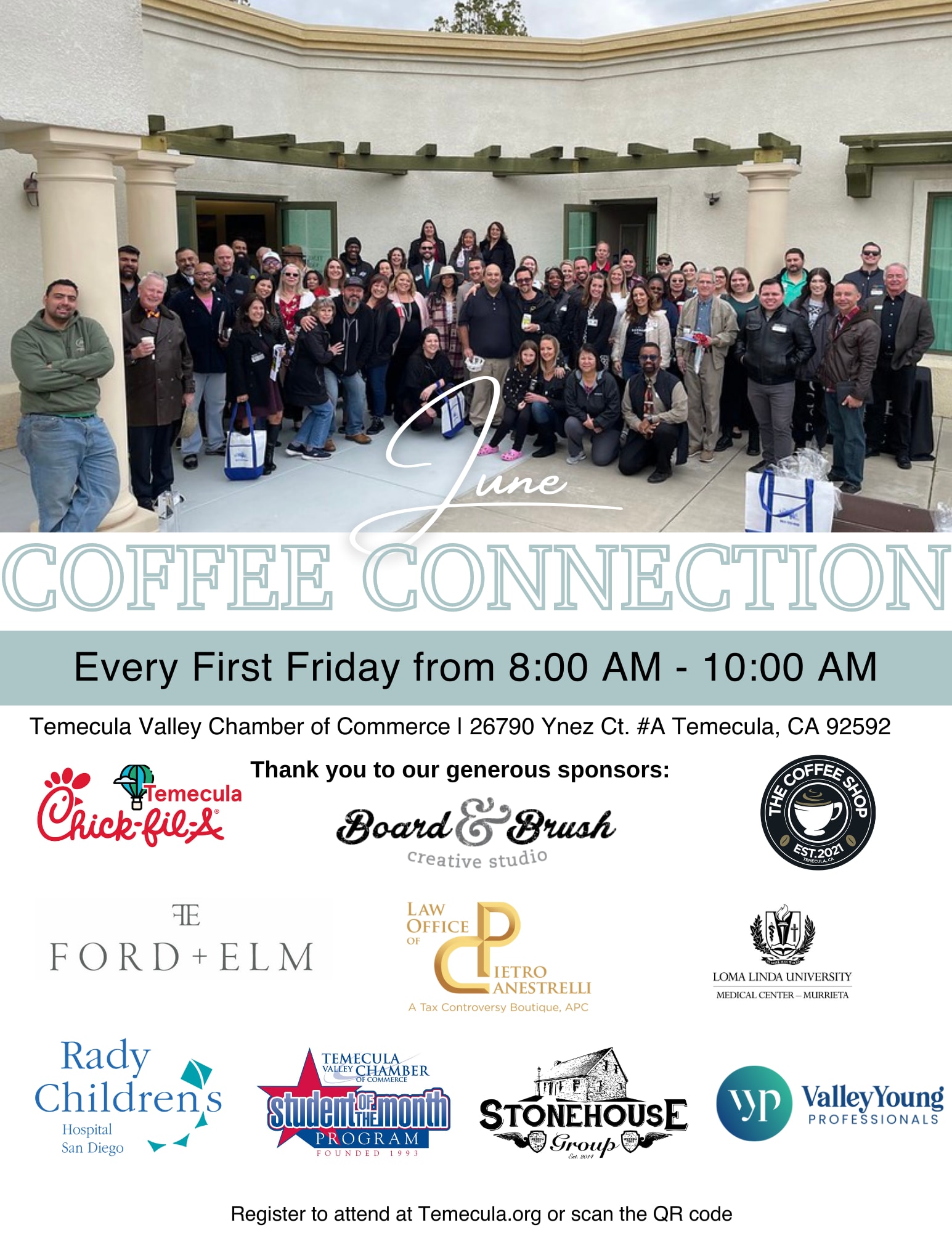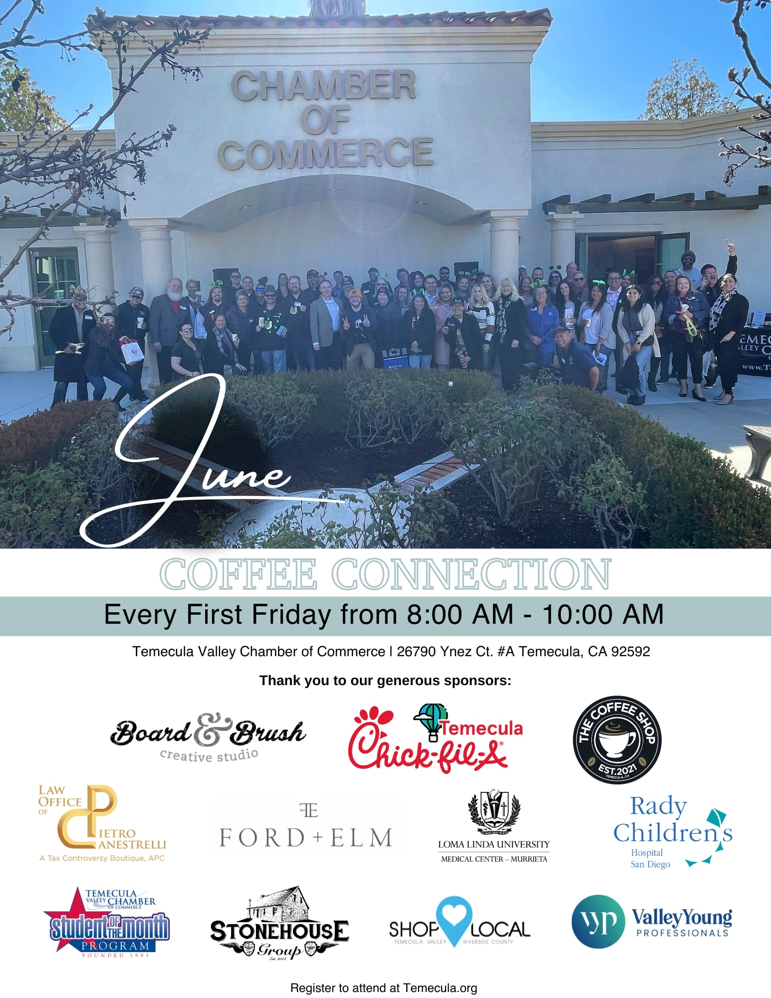 If you are interested in sponsorship opportunities, please click the Register button to get started. If you have any further questions regarding sponsorship for Coffee Connection please contact liz@temecula.org.