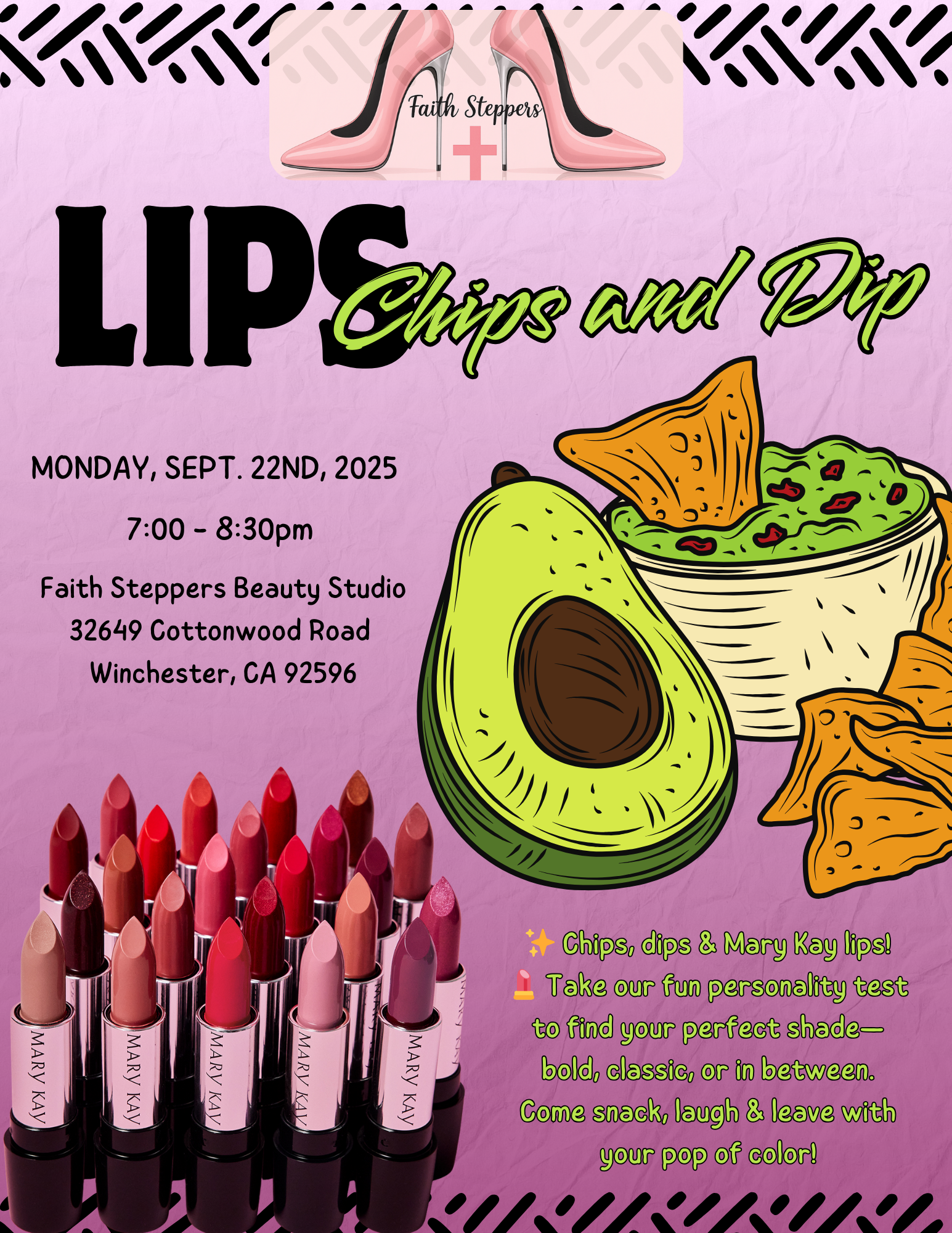 Chips, dips & Mary Kay lips! Take our fun personality test to find your perfect shade- bold, classic, or in between. Come snack, laugh & leave with your pop of color!