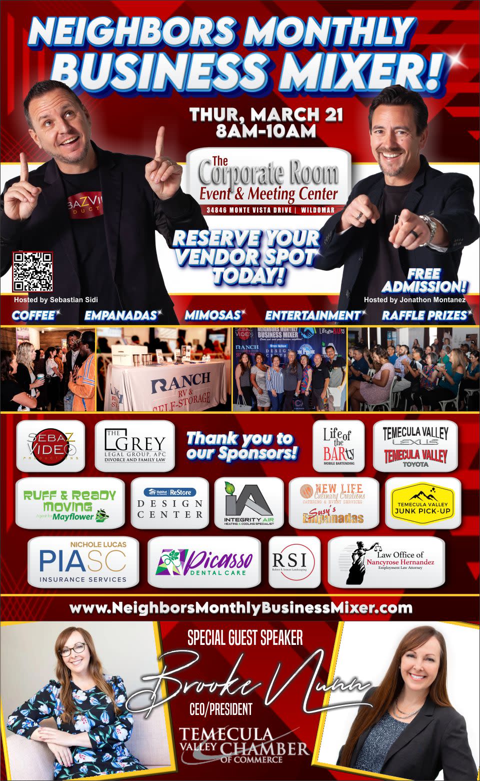 Come Network like a Boss at the Neighbors Monthly Business Mixer at the Corporate Room in Wildomar! Special Guest Speaker, CEO & PRESIDENT of the Temecula Valley Chamber of Commerce, Brooke Nunn. It's going to be an amazing event. IT'S 100% to ATTEND!