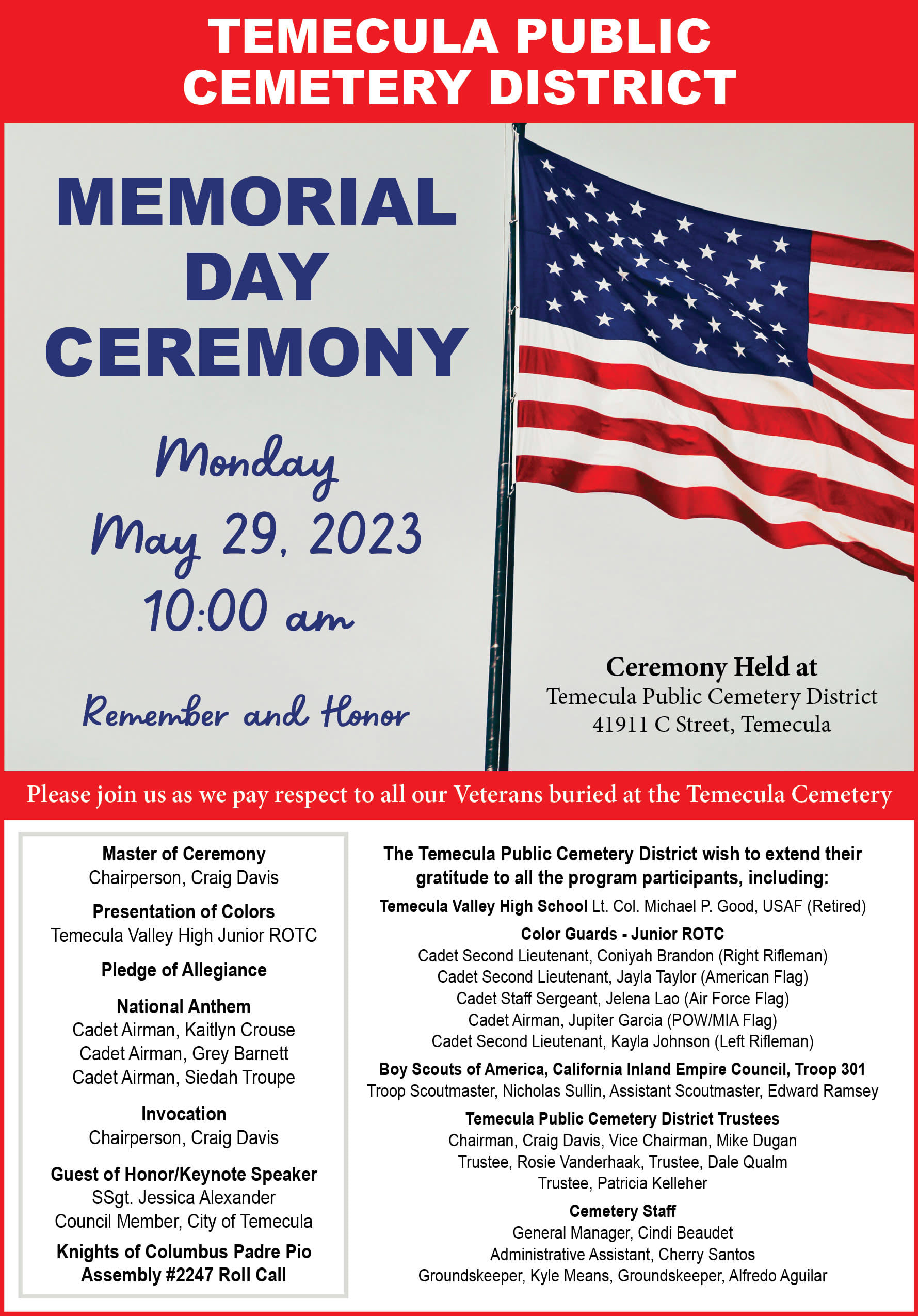 Temecula Public Cemetery District- Memorial Day Ceremony