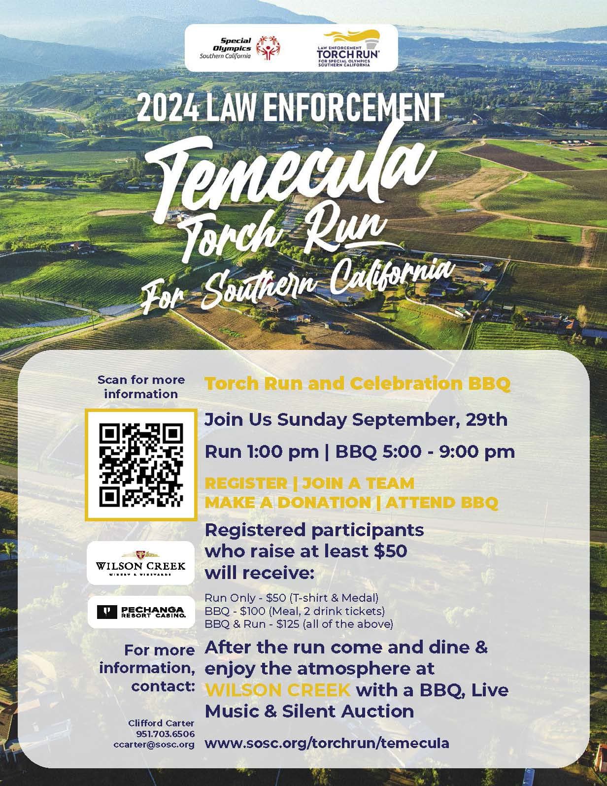 We are excited to celebrate the 23rd Annual Temecula Torch Run & Celebration BBQ on Sunday, September 29, 2024!!