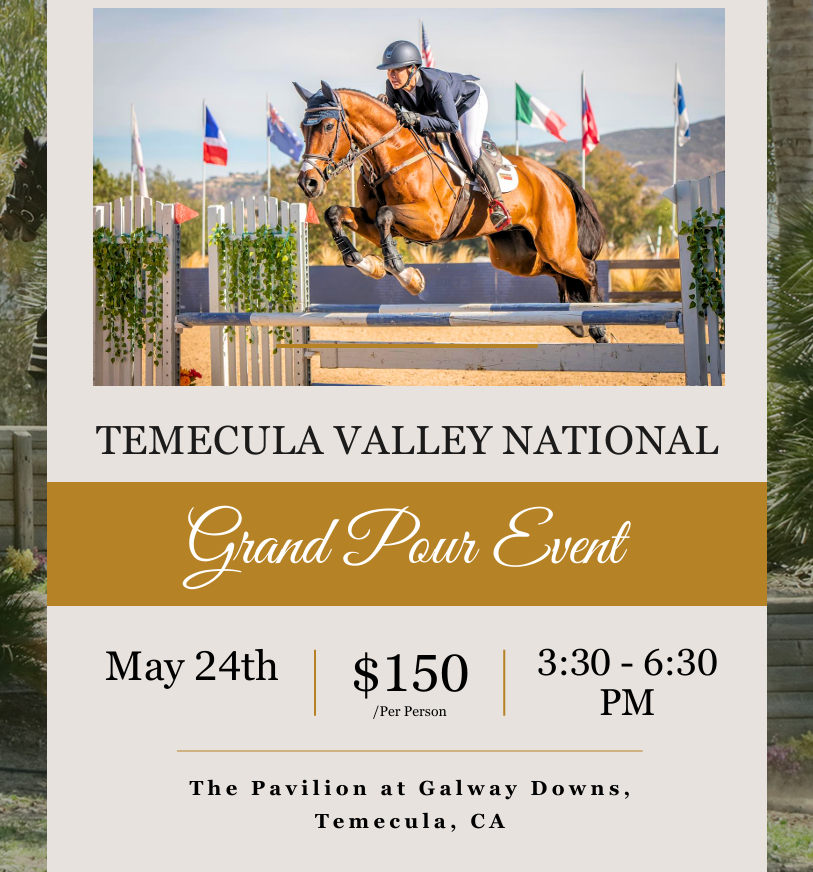 Whether you're passionate about equestrian events, a lover of fine wine, or simply looking for a unique way to spend your Saturday evening, the Grand Pour promises an unforgettable experience that celebrates the best of Temecula Valley.