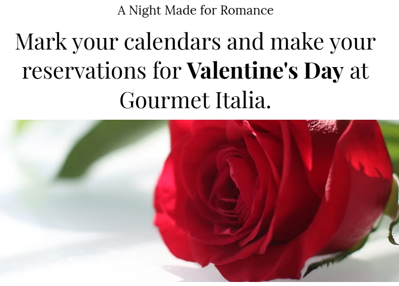 Make your reservation for a romantic dinner at Gourmet Italia.